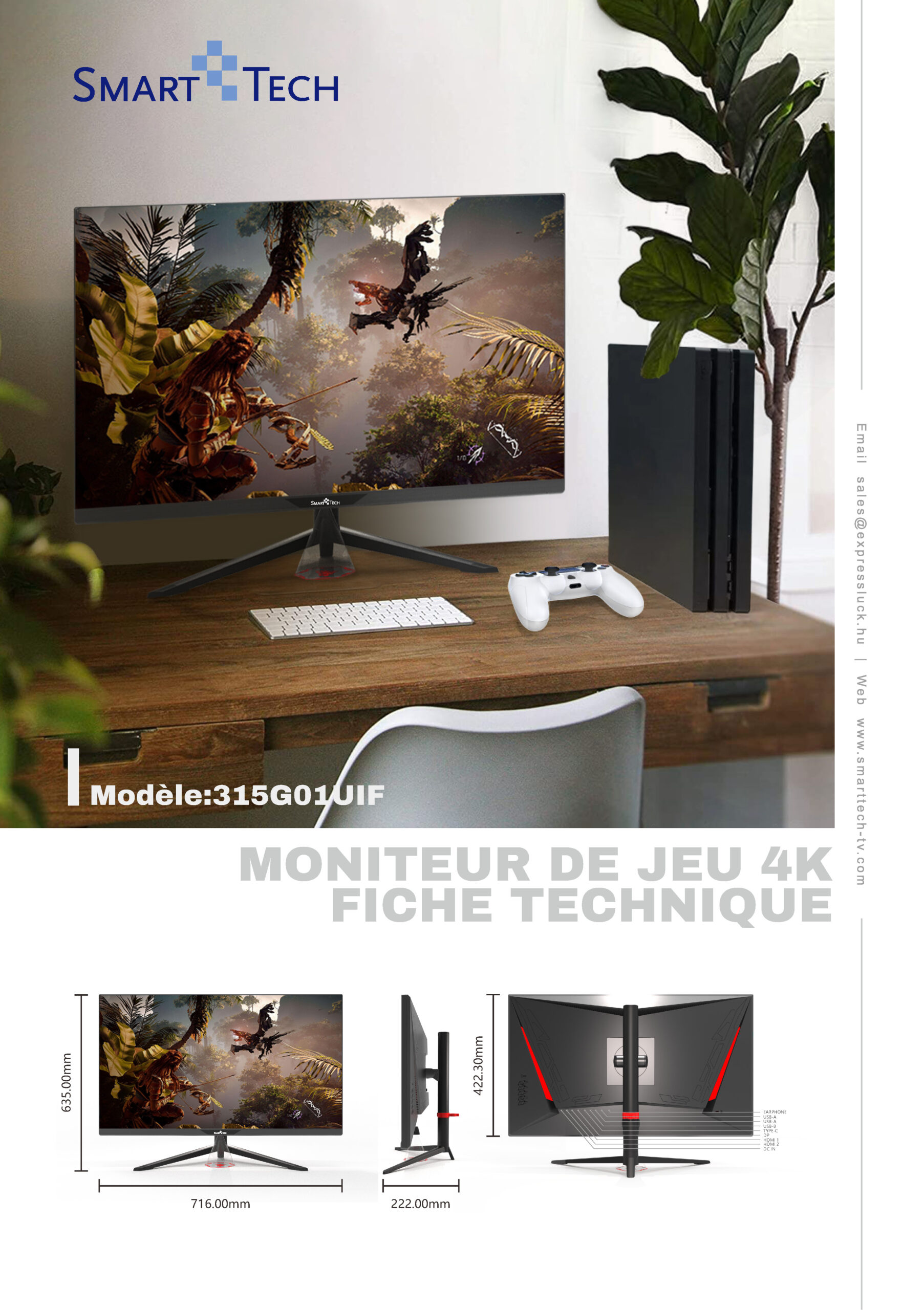 | Dimension with Stand(W*D*H) | 716*222*635mm | ||