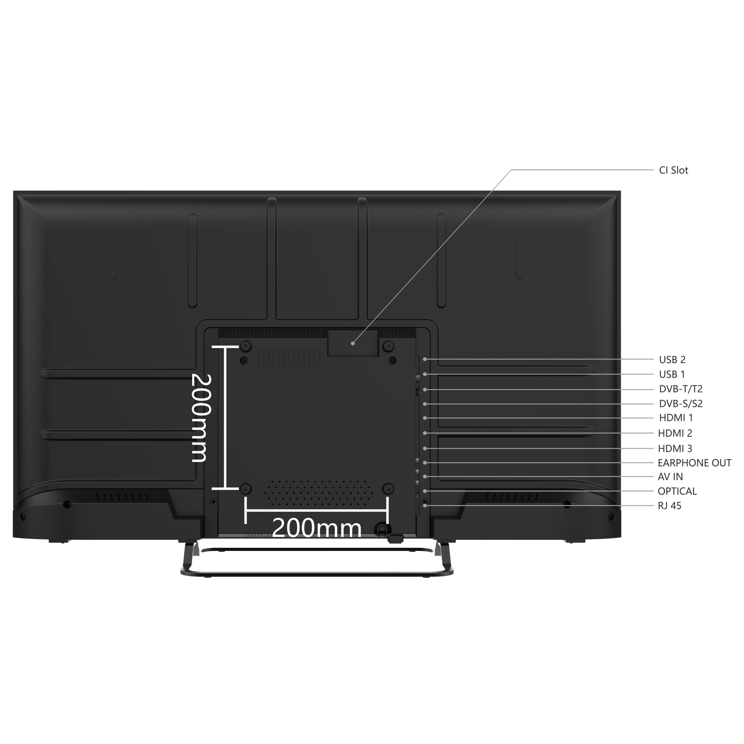 • CONNECTIVITY: 2 USB ports, 3 HDMI ports, Ethernet, WIFI, Bluetooth, CI+, 1 optical port