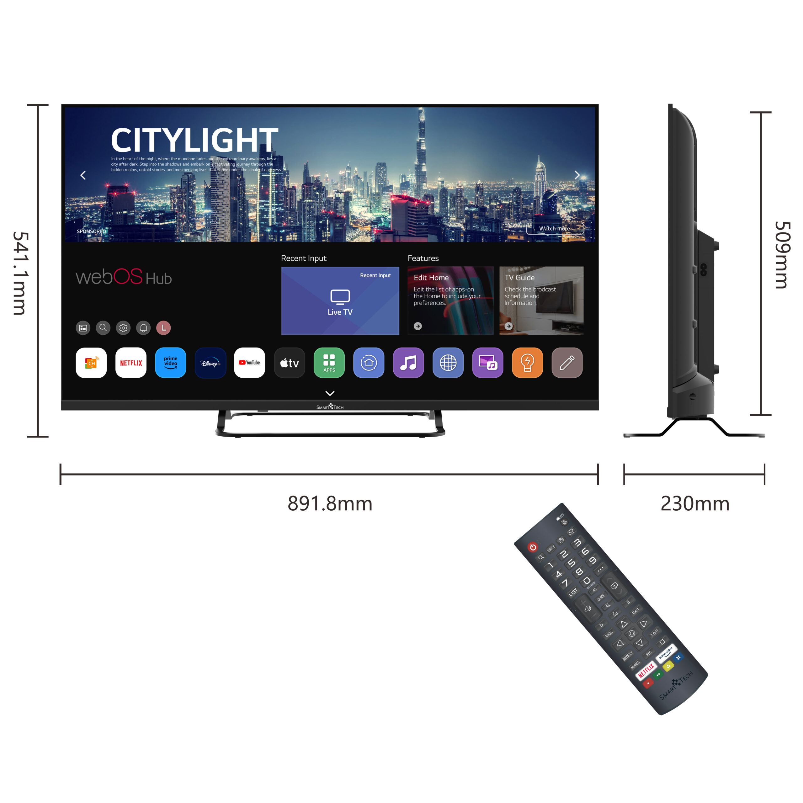 Net size with stand (W x H x D in mm) 891.8*541.1*230