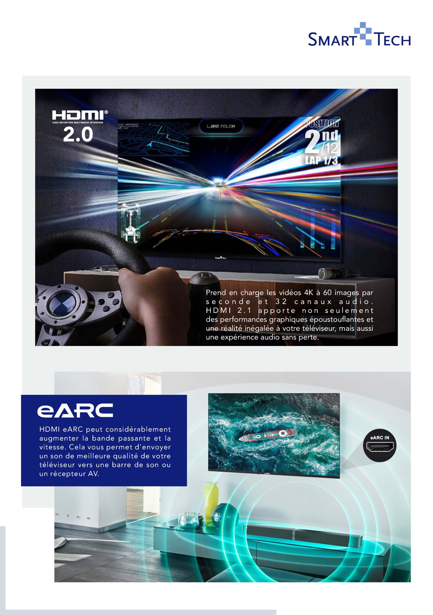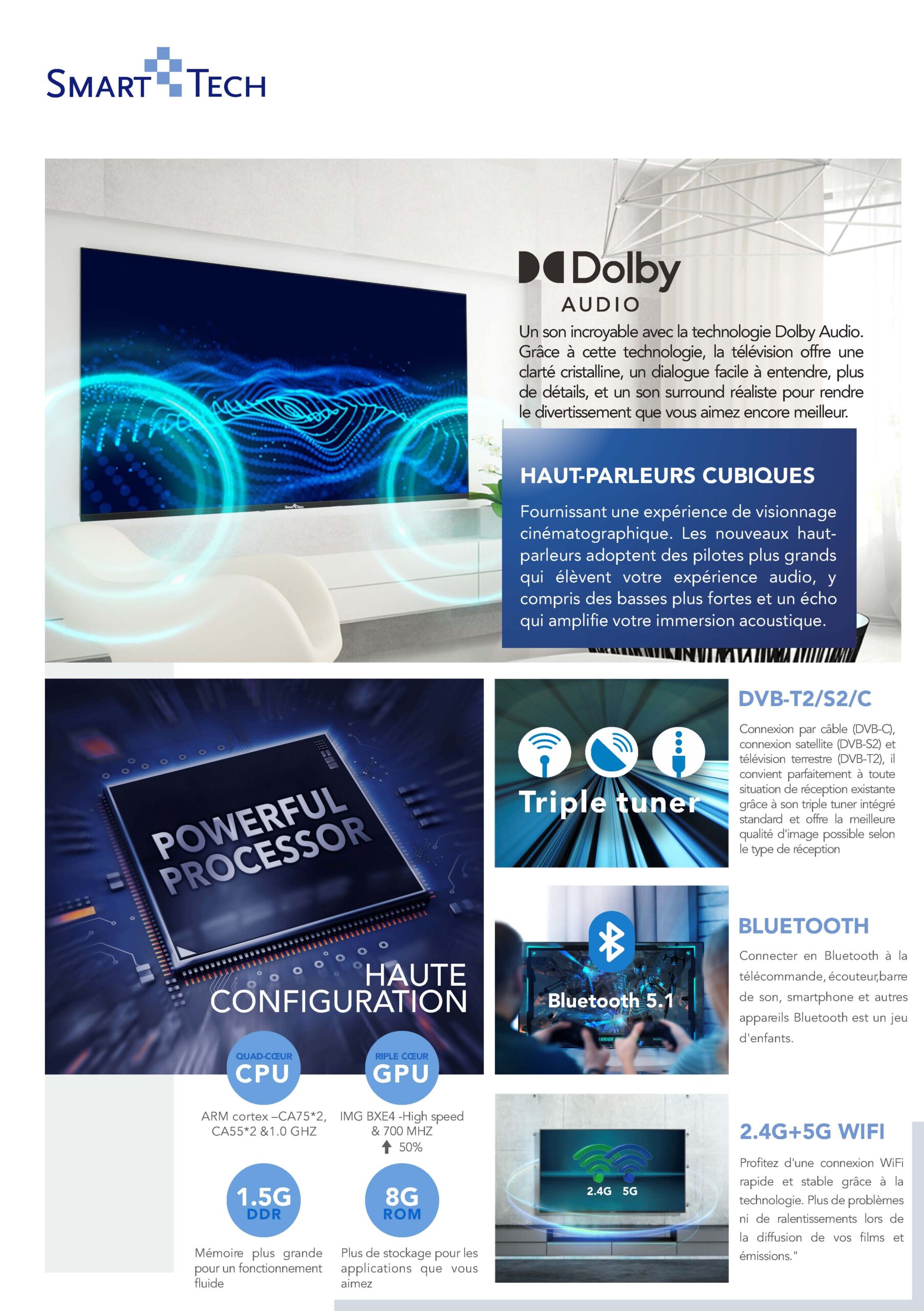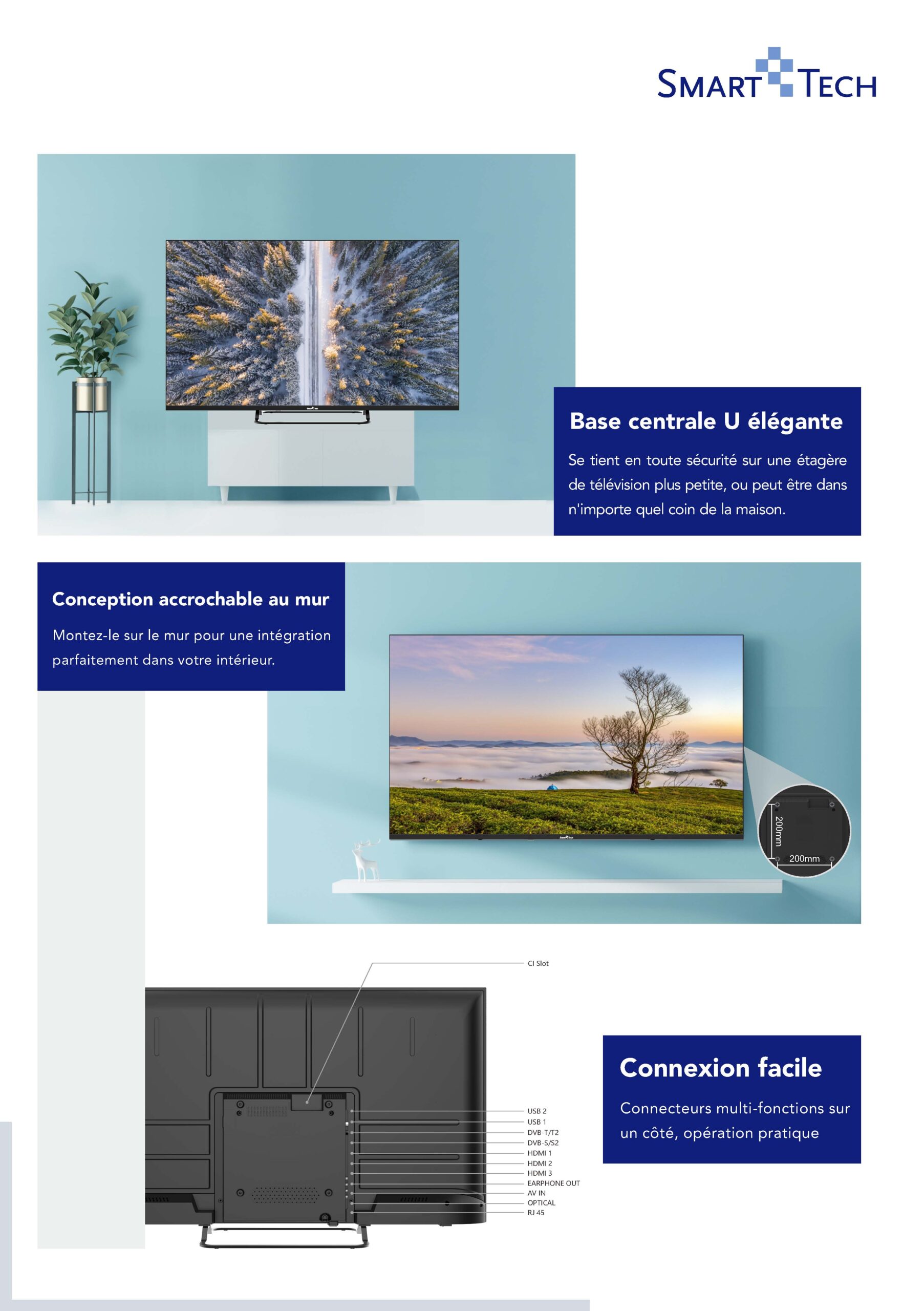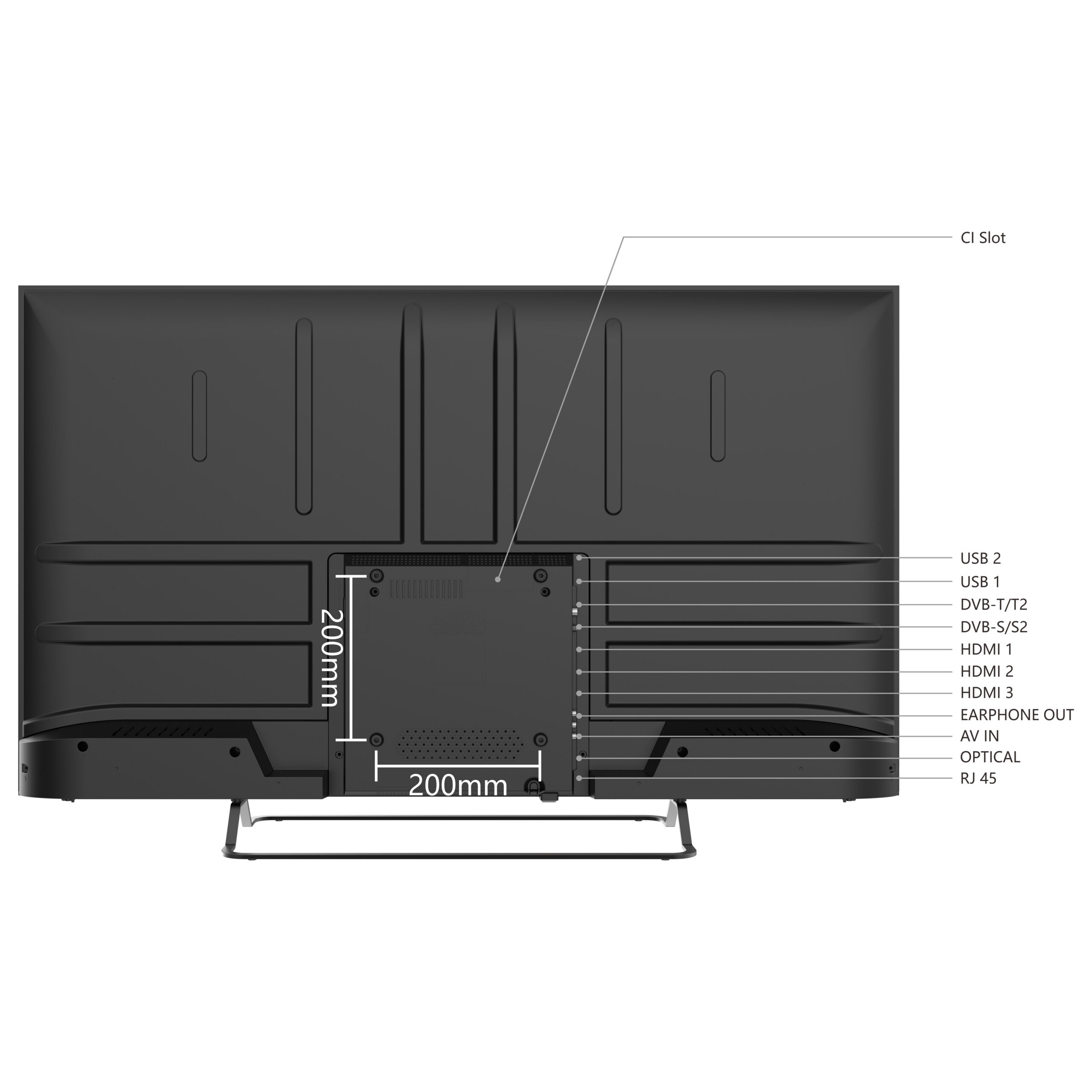 • Connectivity: 2 USB ports, 3 HDMI 2.0 ports, Ethernet, WiFi, Bluetooth, CI+, 1 Optical Port
