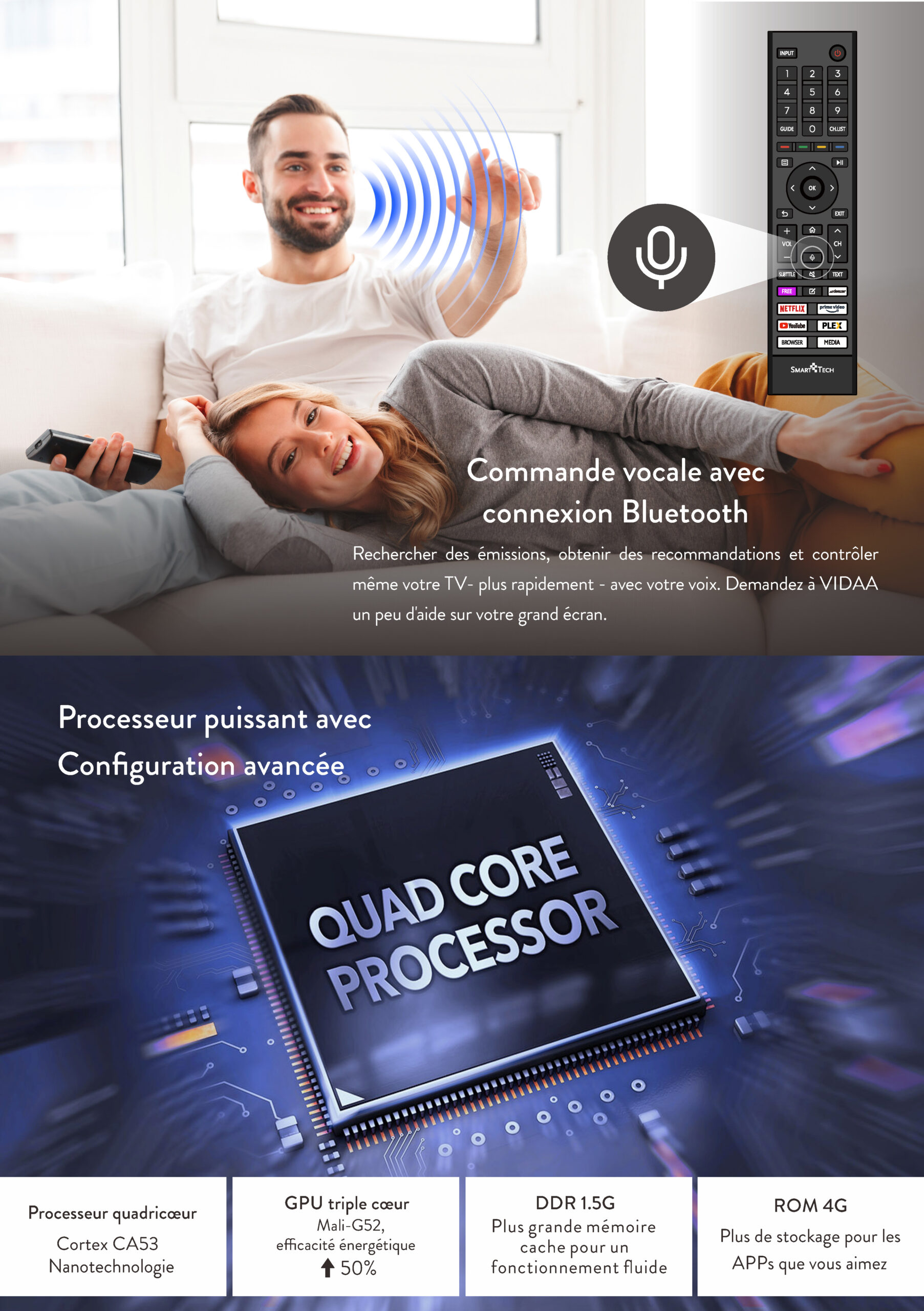 • TV Smart Tech 40" (100 cm); Screen resolution: UltraHD, 3840(H) × 2160(V), Modèle 43UV10V1