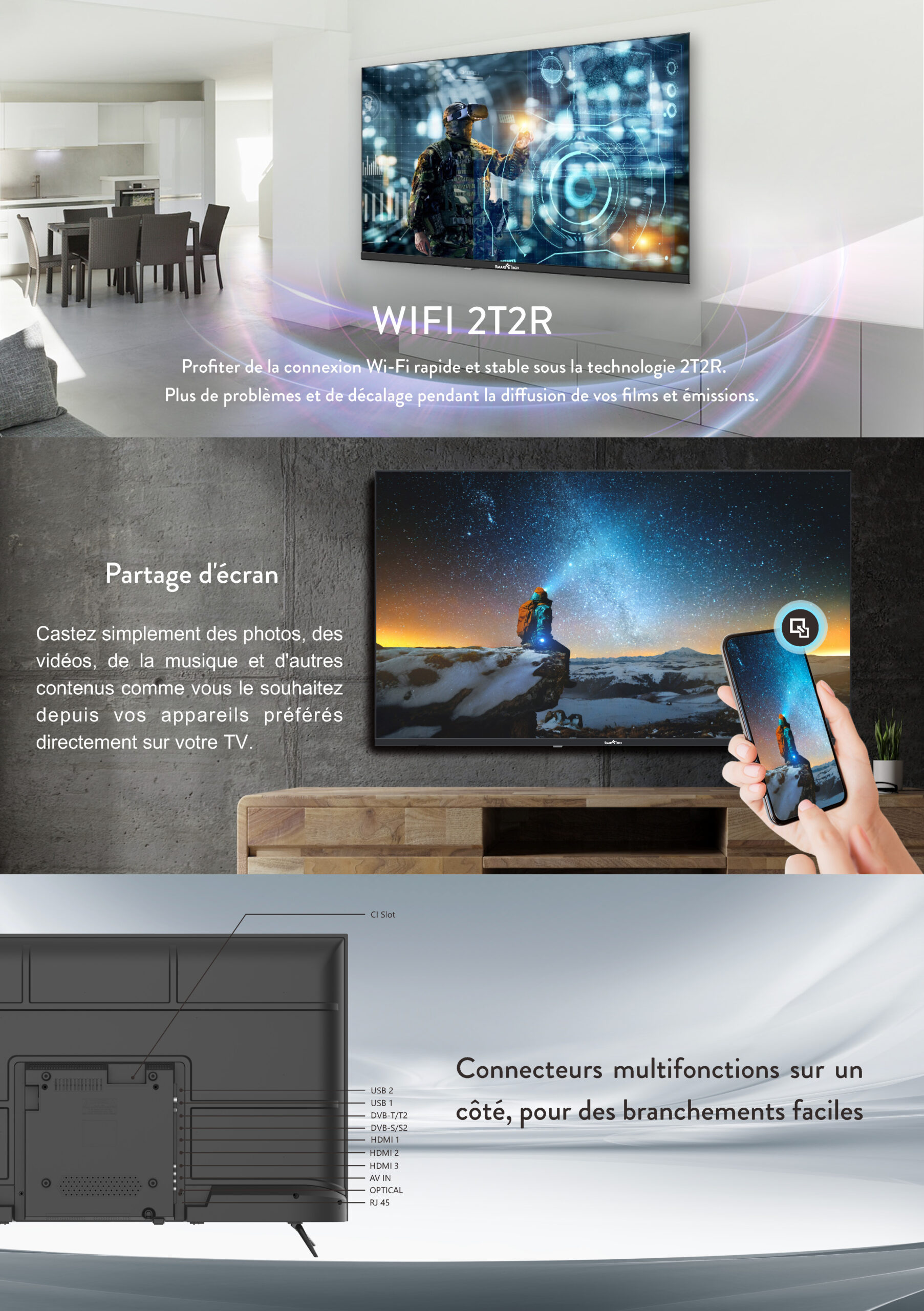 • Pre-installed applications: Molotov, Netflix, Prime Video, Disney+, YouTube, Plex -
