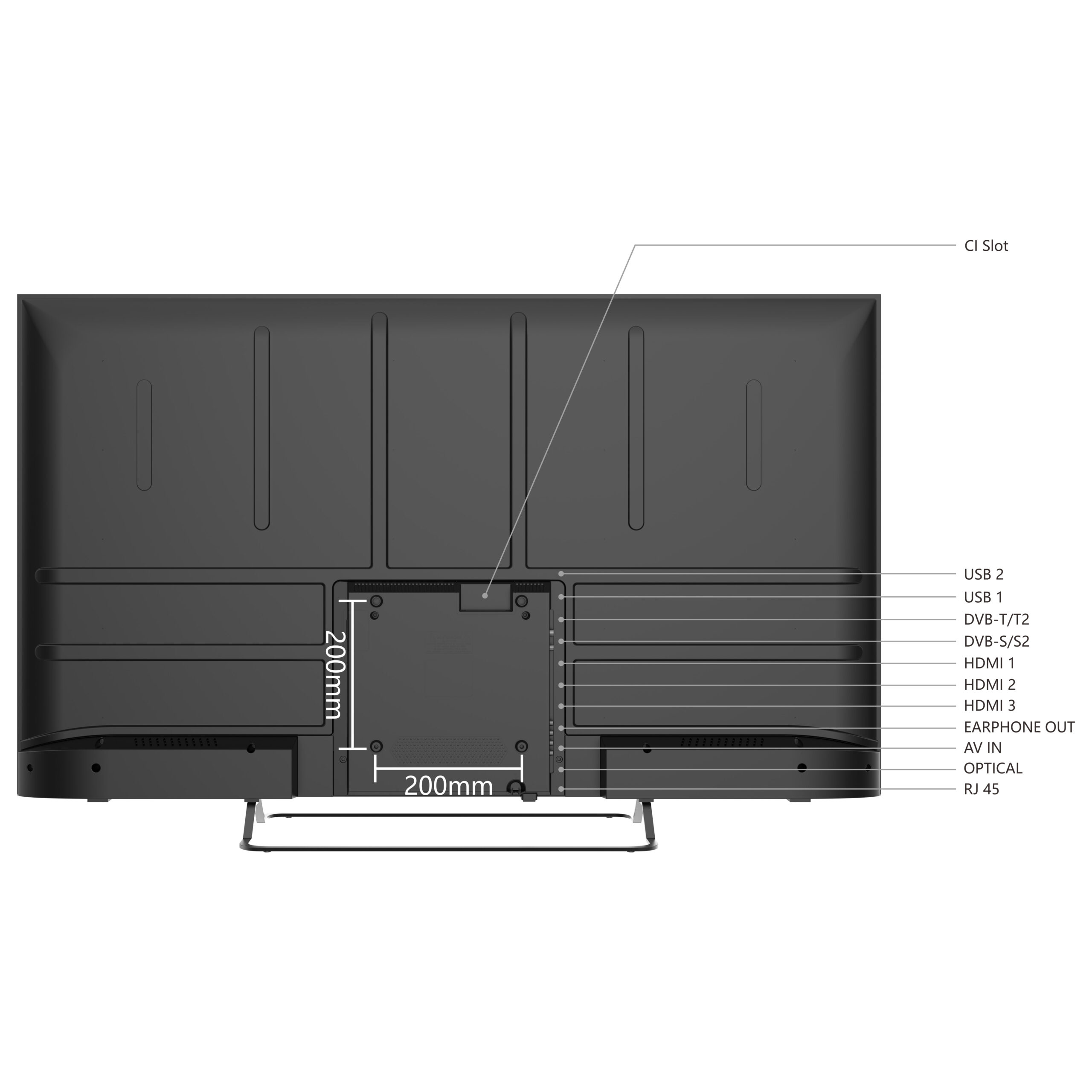 • Connectivity: 2 USB ports, 3 HDMI 2.0 ports, Ethernet, WiFi, Bluetooth, CI+, 1 Optical Port